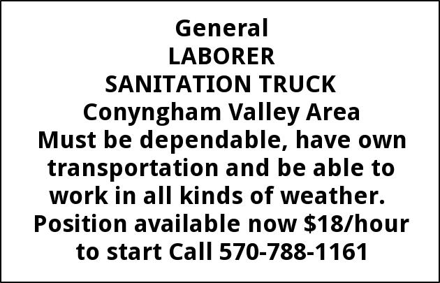 570-788-1161 Laborers Jobs from Standard Speaker